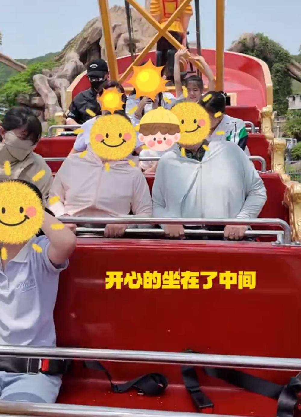 难得带着二女儿出门玩的汪峰,在玩过山车时就和二女儿紧挨着坐在了一起,醒醒则坐在二姐姐另一侧。